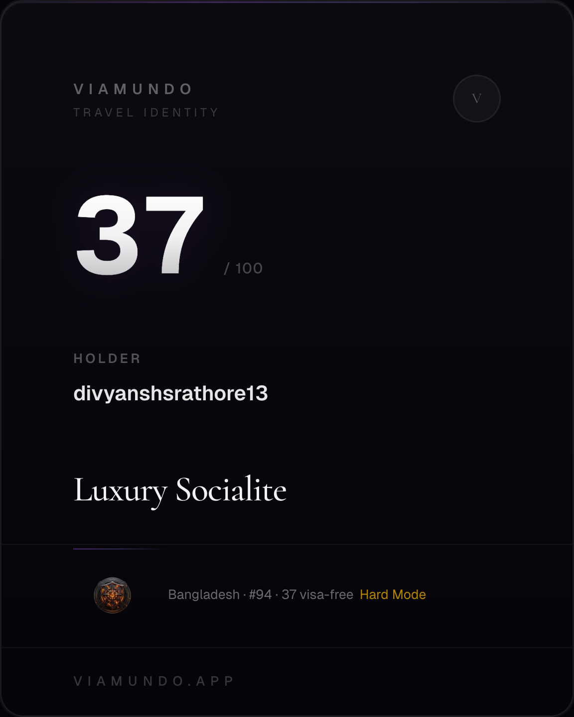 A premium identity card, a global rank, and a Travel Signature that's uniquely yours. Share it everywhere.